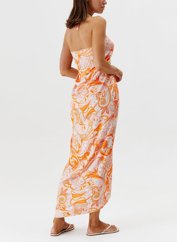 Ellie Orange Mirage Printed Pareo