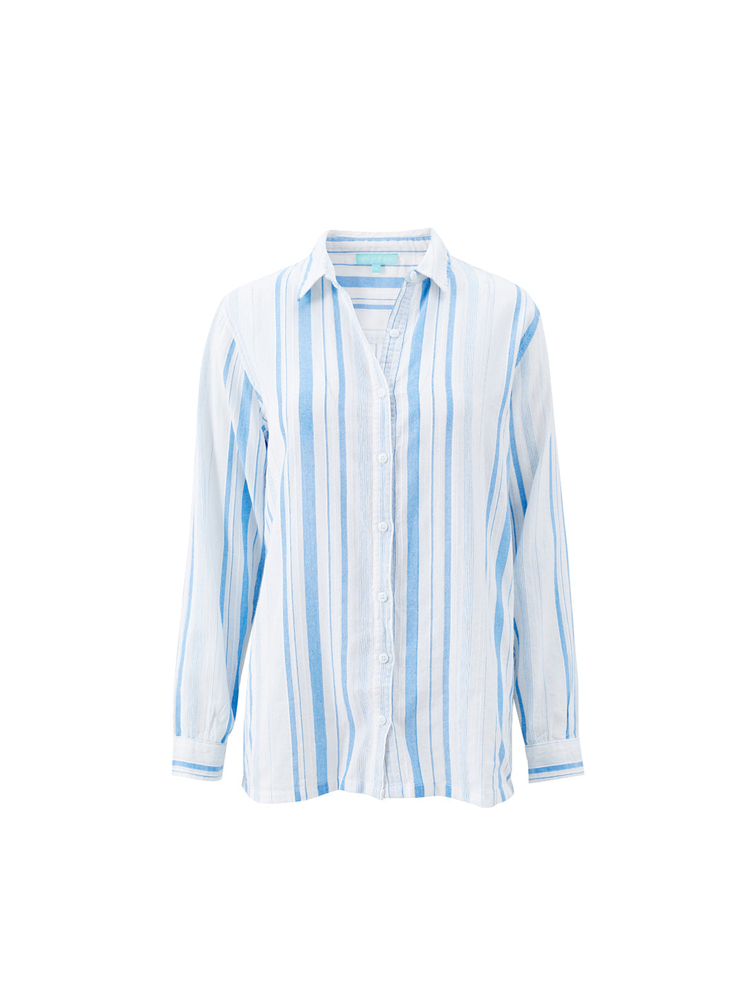 Take a relaxed approach to holiday dressing with the Krissy Trousers. An Odabash staple, this popular style has been updated for High Summer in white and blue Oasis Stripe. Crafted from pure cotton, this pair is cut for straight-leg fit with wide hems and two slip pockets at the hips. An elasticated waistband adds to their laid-back appeal, finished with signature gold branded cord-ends. Pair with the Tina Shirt to create a chic summer co-ord.